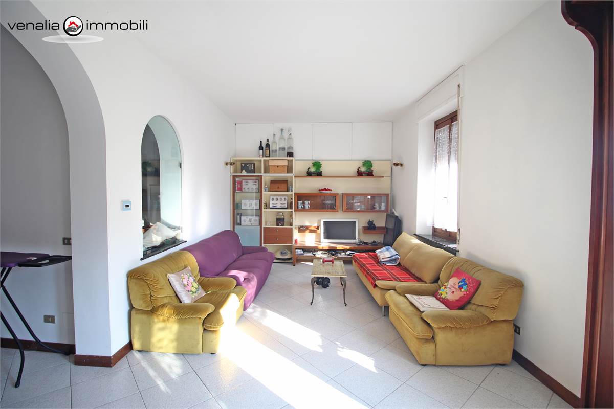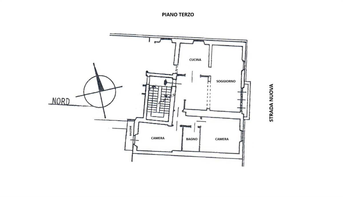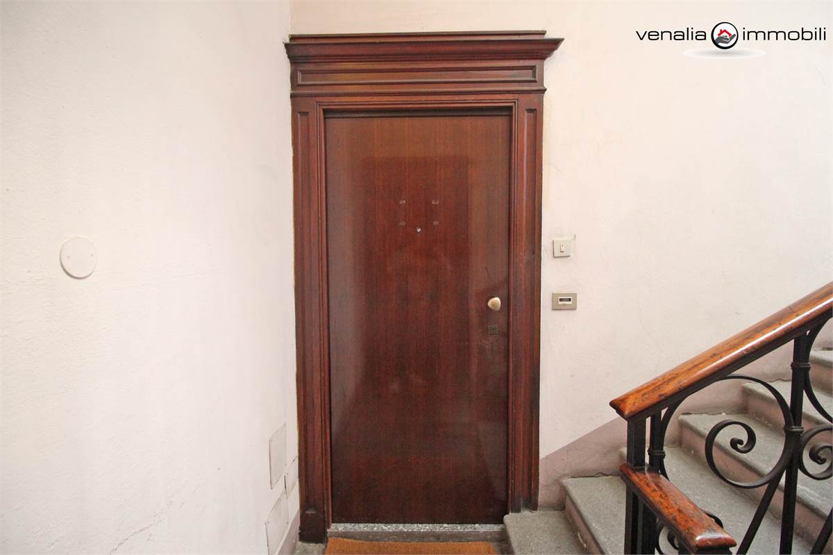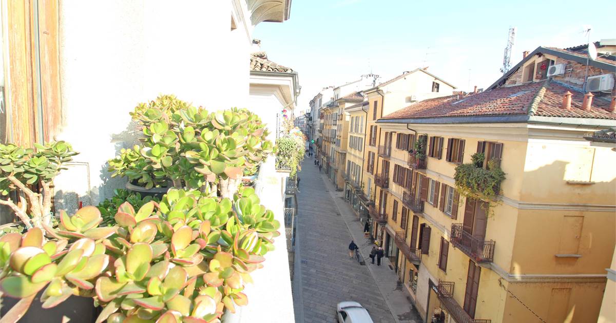 L' abitazione si apre su di una luminosa zona giorno composta da un ampio soggiorno con balcone su Strada Nuova e dalla cucina abitabile, la zona notte comprende una spaziosa camera matrimoniale, una seconda camera servita da balcone con vista sul Duomo e dal bagno con doccia; una cantina al piano interrato completa la soluzione.